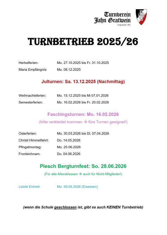 Kein Turnbetrieb wenn die Schule geschlossen ist!